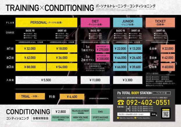 I’s TOTAL BODY STATION ベイサイド店の各種メニュー